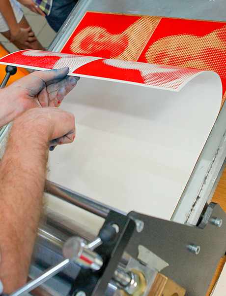 Sessione fotografica, post-produzione, realizzazione matrici con plotter laser, stampa calcografica.